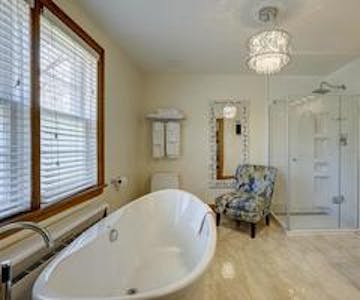 This is our luxury Garden Suite located on the ground floor. Accessed from the backyard with it's own dedicated patio, relax in the huge soaker tub while you watch your favorite TV program. This suite is perfect for singles for a short stay, or couples on a get-away. It's accessed from our private off-street parking, so it’s always safe and secure.
